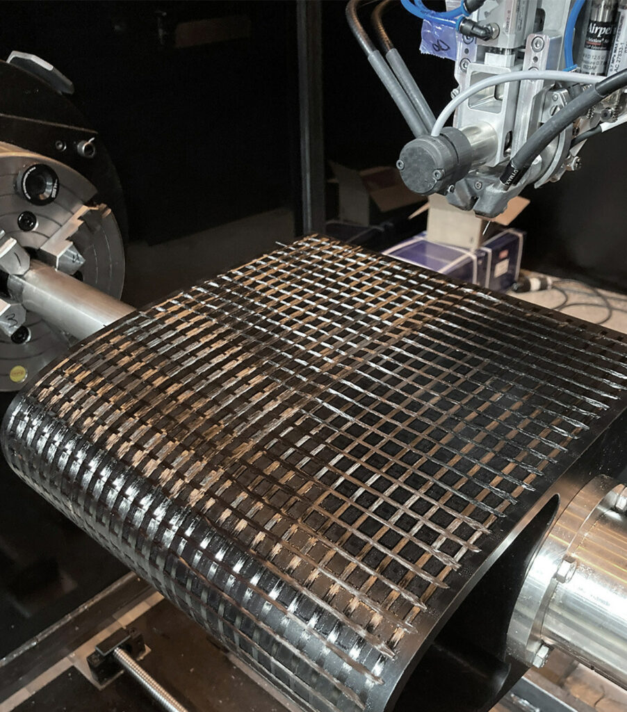 Fiber Architecture Leading Edge is shown printing on Continuous Composites’ 7th-axis mandrel. (Image: Continuous Composites/PR Newswire)