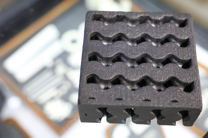This component was 3D-printed, filled with a silicon-carbide pre-ceramic polymer and heat-treated to produce amorphous silicon carbide. (Photo courtesy Amy Smotherman Burgess/ORNL, U.S. Dept. of Energy)