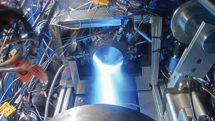 Beehive Industries’ flight-ready Frenzy™ engine is pictured firing successfully during vacuum chamber testing in Ohio. Flight tests are slated for early 2026. (Photo courtesy Beehive Industries/Business Wire)