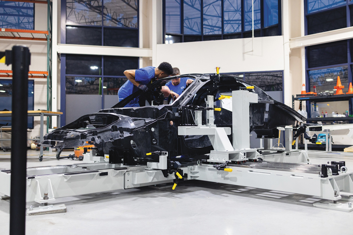 This assembly jig is used to align and bond Aptera’s body structure together. (Photo courtesy Aptera Motors Corp/GlobeNewswire)