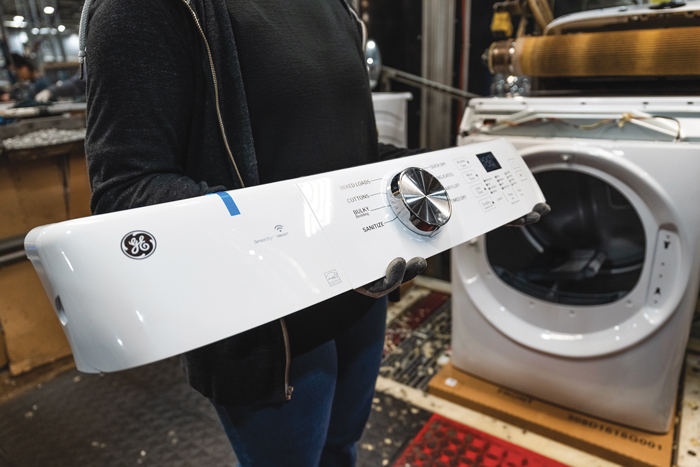 A close-up of the injection-molded control panel that will be produced by Jones Plastic & Engineering Corp., which operates in Kentucky and Tennessee, when washer-dryer manufacturing expands at Appliance Park’s Building 2. (Photo: GE Appliances, a Haier company)