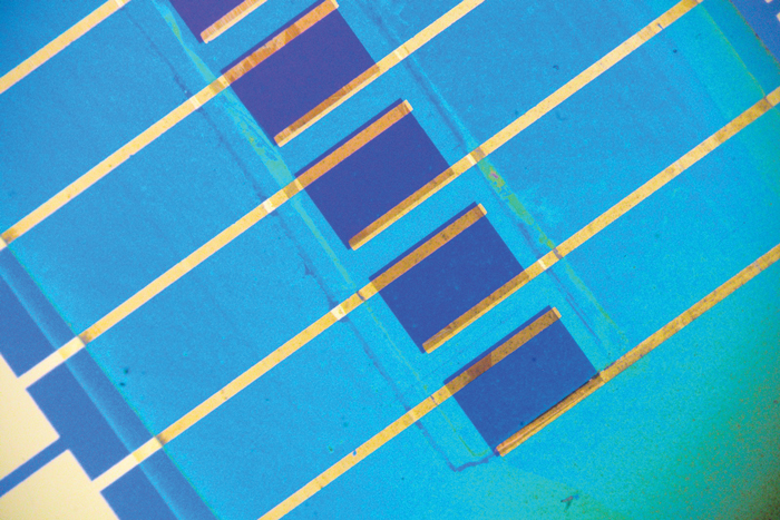 An organic electrochemical transistor fabricated during the AI-guided autonomous experiments. (Image by Argonne National Laboratory.)